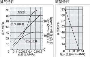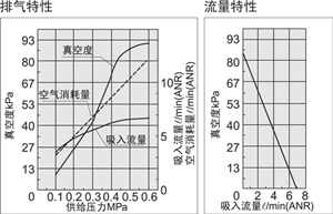 排气特性/流量特性图标(供给压力在0.45MPa的情况下)